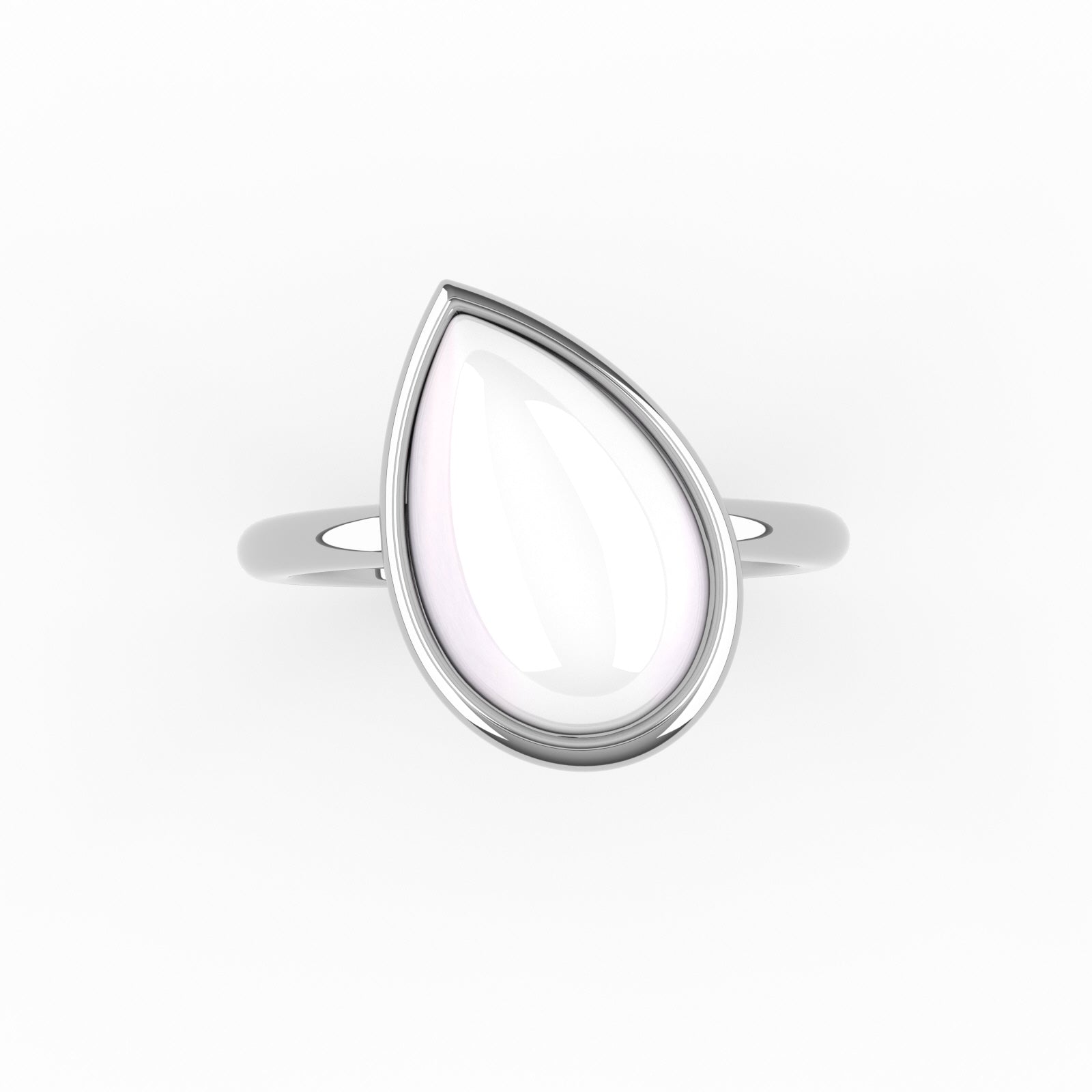 Pear-shaped preserved breastmilk stone, bezel set in solid 18K white gold.